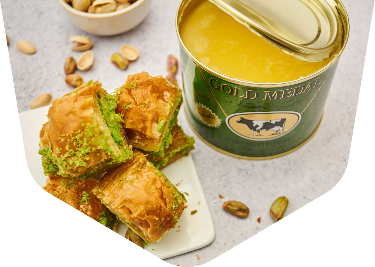 Our ghee is available in retail size tins of 400 gram, 800 gram and 1600 gram. For foodservice purposes we provide tins of 15 and 20 kgs.